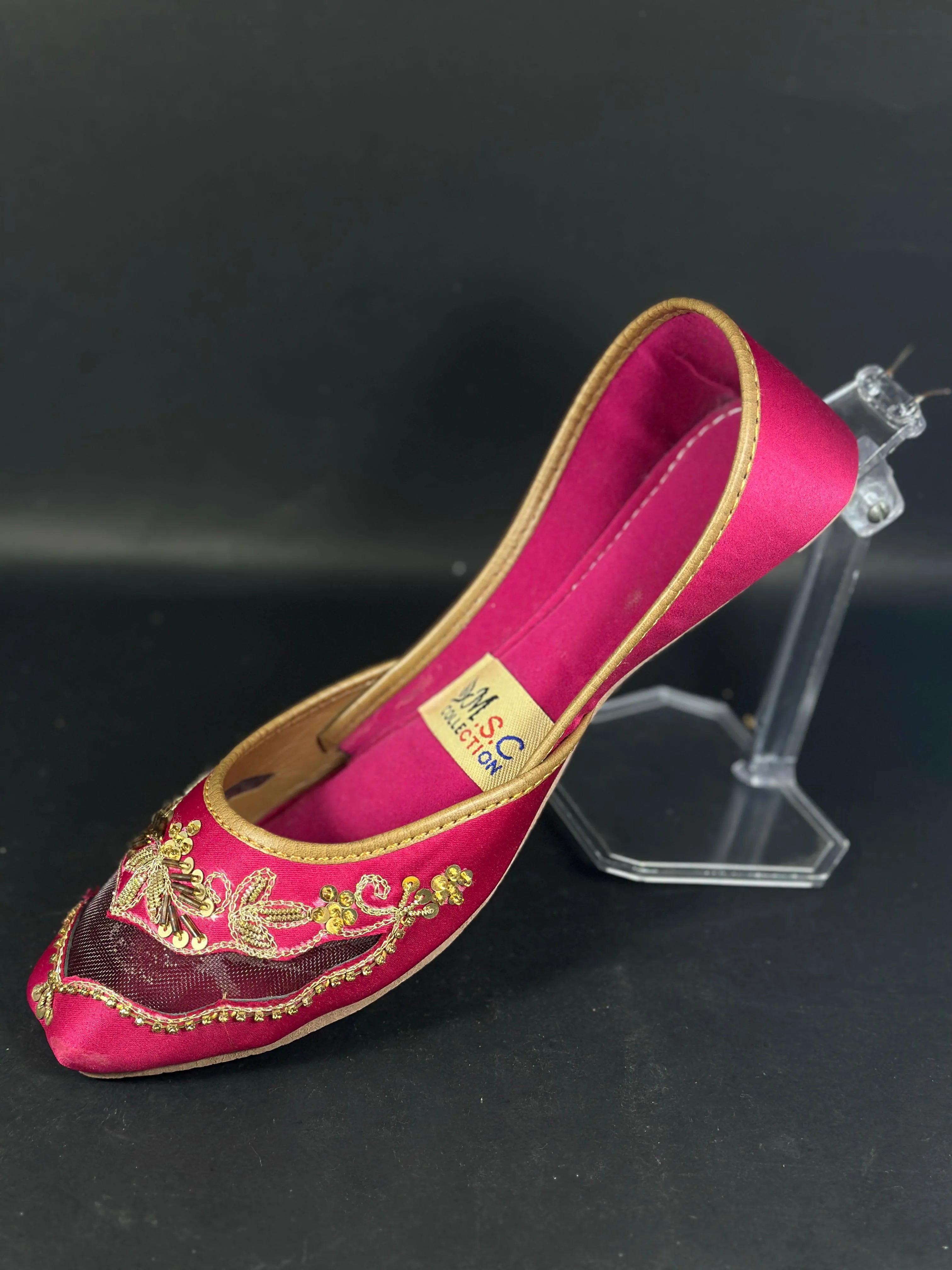 Golden Women’s Traditional Kussa – Handmade Ethnic Flat Shoes