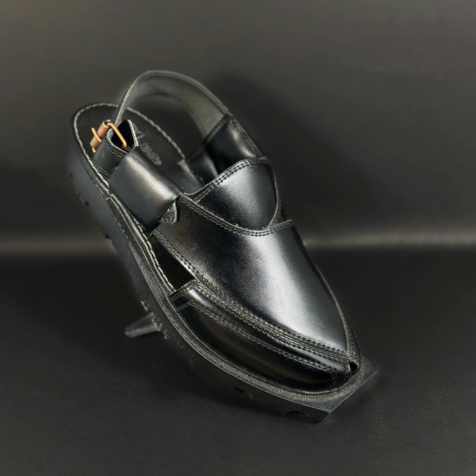 Black Handmade Leather Peshawari Chappal – Classic Comfort & Durability